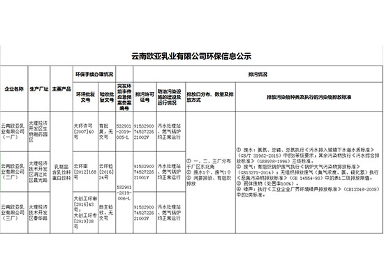 云南歐亞乳業有限公司(三廠)信息公開